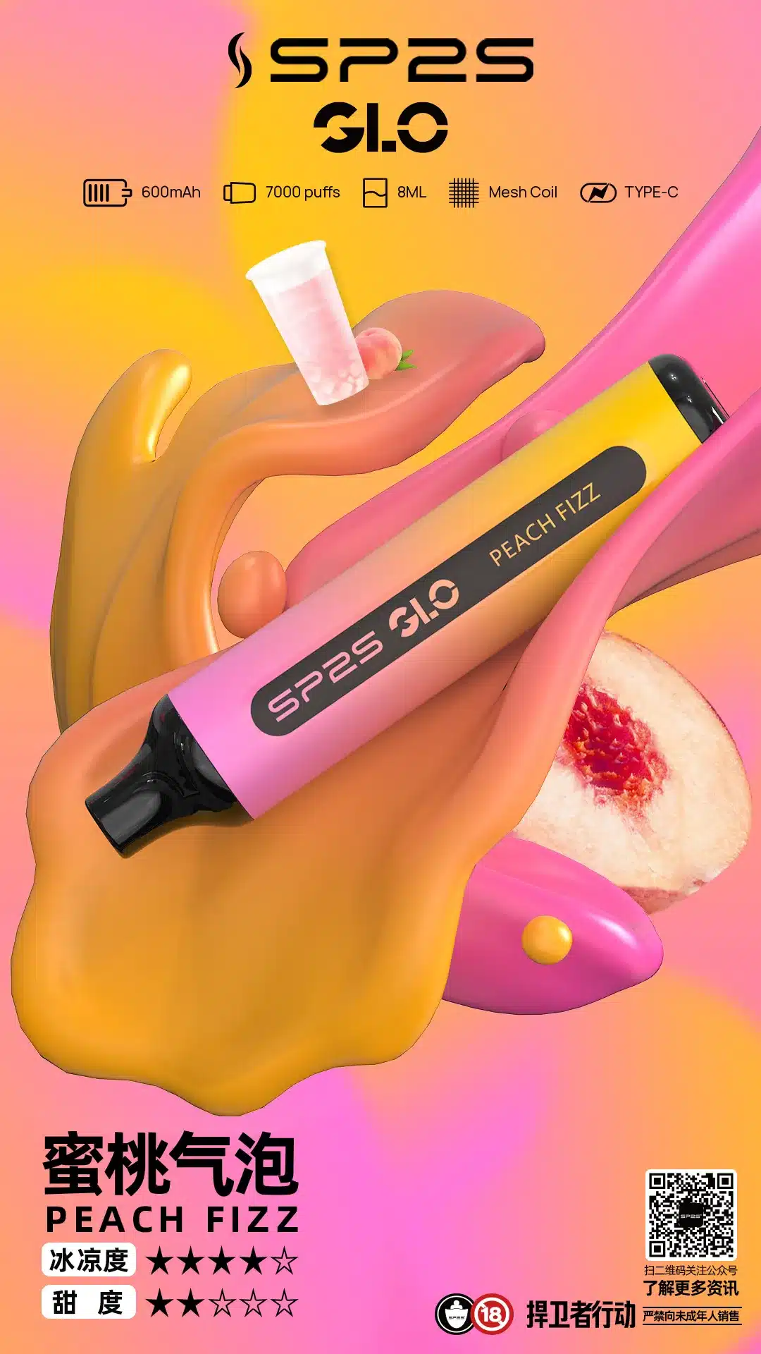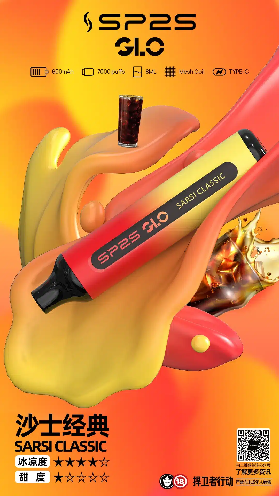 SP2S GLO 7000口一次性電子煙專為追求高品質與便利性的用戶設計,具備以下特色: